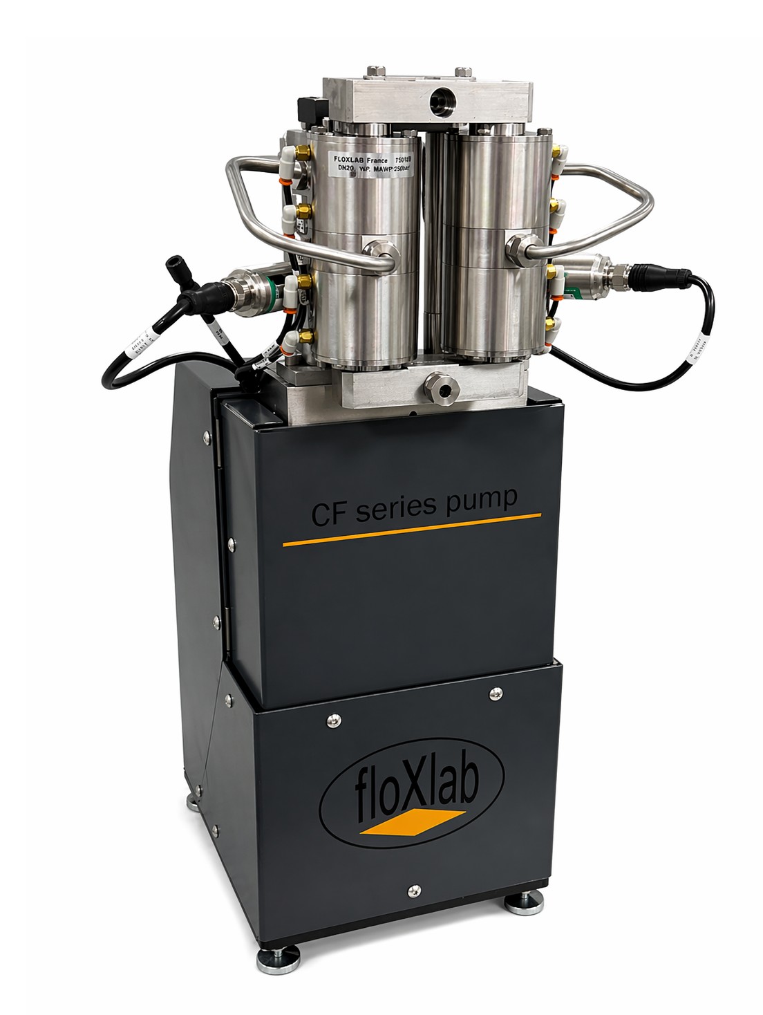 The Floxlab CF Series pumps deliver unparalleled accuracy and repeatability, ensuring the critical pulse-free, high-pressure flow metering needed in diverse industrial and research environments. The CF Series pumps feature dual motor-driven pistons, each independently controlled, and employ a unique pre-pressurization step in every piston cycle, moving away from the traditional use of reciprocating pistons. As one cylinder dispenses fluid, its counterpart rapidly refills and then initiates pre-pressurization to equalize the pressure with the first cylinder. The system utilizes individual pressure transducers for each cylinder, a bespoke microcontroller, and advanced software algorithms to guarantee exact pressure measurement and synchronization. This ensures a seamless transition between cylinders without any noticeable pulse. The smooth, pulse-free fluid flow is further refined by an automatic valve with zero dead volume. Additionally, the pistons can be operated independently for greater operational versatility.