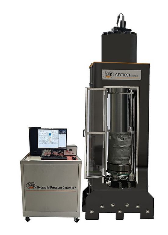 The GEOTEST EXPRESS is an advanced and streamlined rock compression testing system engineered for performing triaxial compression tests under both static and dynamic conditions. Equipped with a state-of-the-art servo controller and automated testing software, the system can execute a complete triaxial test cycle—from initialization to completion—including multi-stage testing procedures. Each unit can be custom-configured to meet specific requirements, offering a wide range of load and pressure capacities, temperature limits, specimen sizes, and frame stiffness levels, ensuring a tailored solution for every user. The system incorporates a high-stiffness box-type load frame designed to withstand the significant forces exerted on the structure during testing. A servo-controlled hydraulic actuator ensures rapid and precise piston movement, delivering high loading capacity and smooth operation in displacement, strain, stress, or load control modes. The triaxial cell assembly includes an automatic locking mechanism and an integrated hydraulic lift, allowing for fast, effortless specimen installation. The cell opens and closes automatically at the push of a button, eliminating the need for bolts or nuts to secure it. This innovation significantly reduces setup time, effectively doubling the number of tests that can be completed in a single day compared to conventional systems.