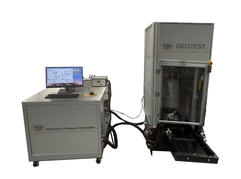 The GEOTEST EXPRESS is an advanced and streamlined rock compression testing system engineered for performing triaxial compression tests under both static and dynamic conditions. Equipped with a state-of-the-art servo controller and automated testing software, the system can execute a complete triaxial test cycle—from initialization to completion—including multi-stage testing procedures. Each unit can be custom-configured to meet specific requirements, offering a wide range of load and pressure capacities, temperature limits, specimen sizes, and frame stiffness levels, ensuring a tailored solution for every user. The system incorporates a high-stiffness box-type load frame designed to withstand the significant forces exerted on the structure during testing. A servo-controlled hydraulic actuator ensures rapid and precise piston movement, delivering high loading capacity and smooth operation in displacement, strain, stress, or load control modes. The triaxial cell assembly includes an automatic locking mechanism and an integrated hydraulic lift, allowing for fast, effortless specimen installation. The cell opens and closes automatically at the push of a button, eliminating the need for bolts or nuts to secure it. This innovation significantly reduces setup time, effectively doubling the number of tests that can be completed in a single day compared to conventional systems.