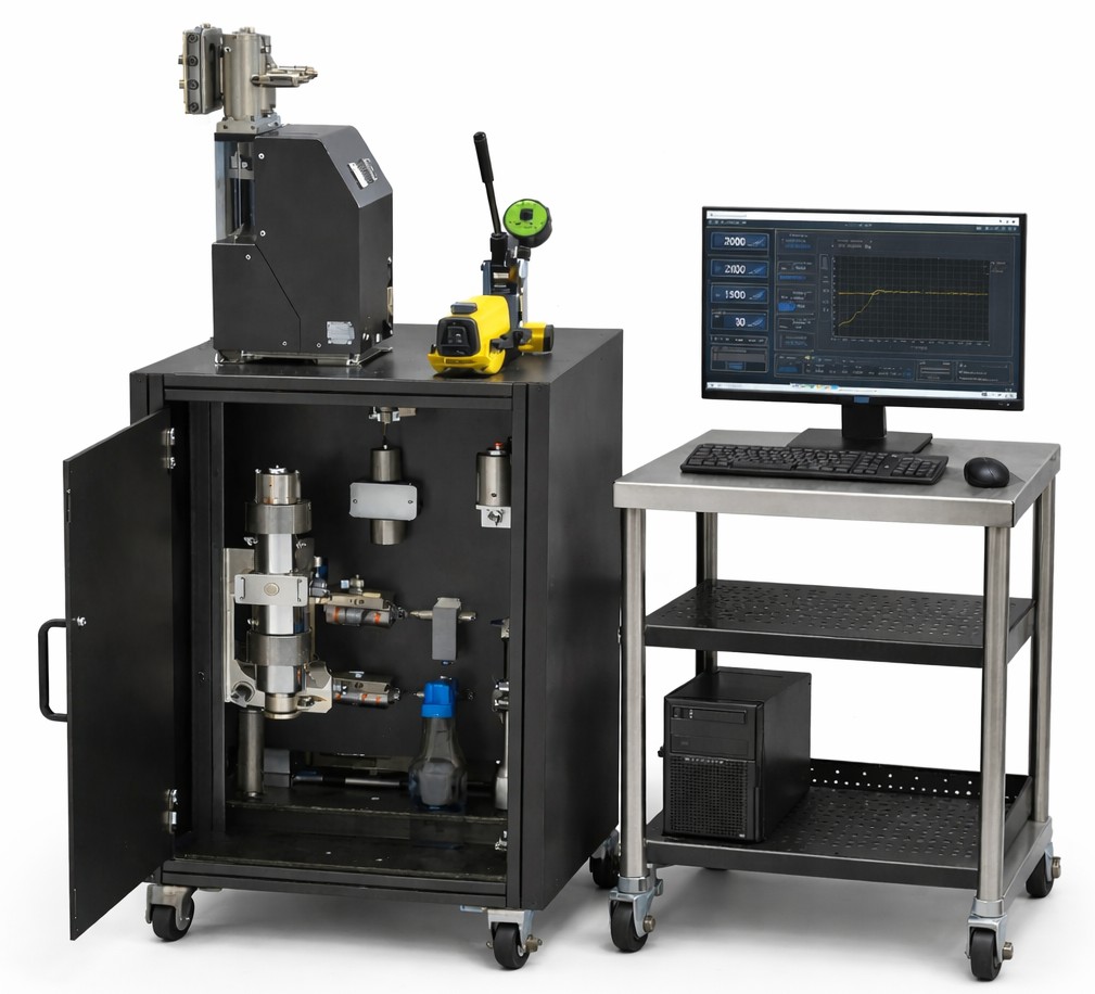 The SSP-700 determines the permeability of a rock core sample in accordance with Darcy’s Law. A controlled flow of pore fluid is injected through the core using a pore-pressure pump to determine permeability. The sample is enclosed in a jacket, placed inside a core holder, and subjected to the required confining pressure. Fluid is introduced at the inlet face, while a back-pressure regulator maintains a constant outlet pressure to ensure stable test conditions. The pressure drop across the sample is monitored using two differential pressure transducers: a low-range sensor for high-permeability samples and a high-range sensor for low-permeability samples. This dual-sensor setup ensures accurate measurements over a permeability range of approximately 0.01 millidarcy (md) to 1 darcy. The testing system consists of a liquid permeameter control cabinet, a pore-pressure injection pump, and a hydrostatic core holder with a diameter of either 1 inch or 1.5 inches.