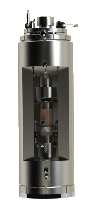 The UTC-series triaxial cell functions as a specialized chamber designed to apply both axial and radial compressive forces on cylindrical rock samples. This dual-directional stress is achieved by exerting a surrounding confining pressure alongside an axial force. To operate, the cell needs to be situated within a specialized axial load frame. Within the cell, the rock sample is encased in a Teflon sleeve and sandwiched between hardened steel end platens. This setup is then submerged in pressurized oil for confinement. Electrical and coaxial feedthrough connectors at the top of the cell enable the addition of internal measurement instruments, such as devices for tracking axial and radial deformations, ultrasonic platens, and various specialized transducers. Additionally, a heating system can be included in the cell if needed.